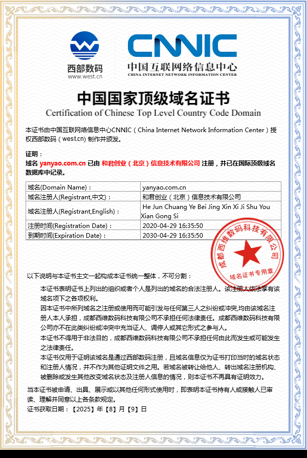2024年5月3日——和君创业信息技术有限公司宣布,以15000元成功收购与品牌全拼完全匹配的顶级域名yanyao.com.cn。此次域名收购是岩腰牌战略升级的重要举措,标志着企业在数字化形象建设方面取得突破性进展。